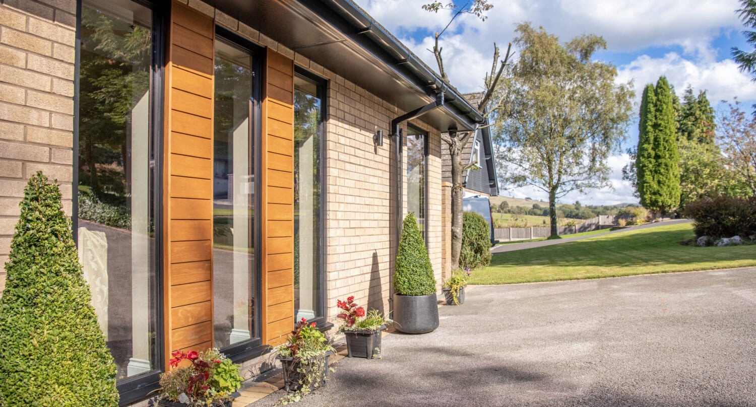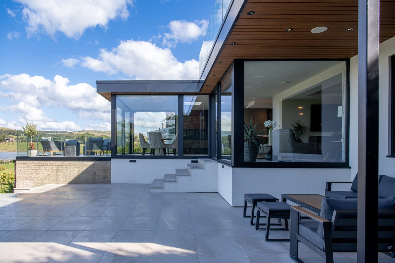 The rear elevation however is a stark contrast to the front, a modern rendered elevation dominated full by height glass doors and windows. The outward appearance of the home is impressive, but it is once inside you can feel the benefits of the superb design and how our products have allowed the homeowners to make the most of their far reaching views.