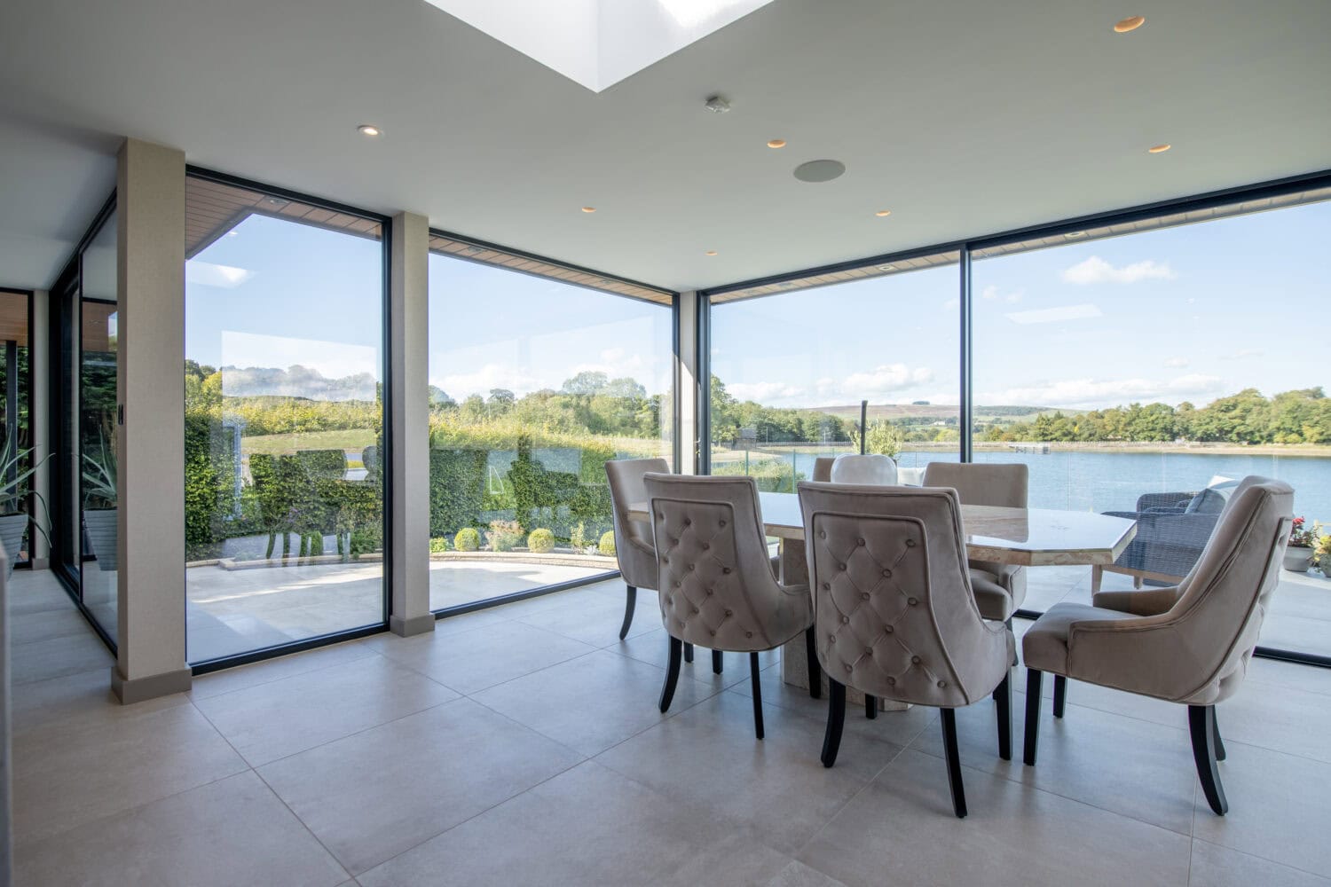 The rear elevation benefits from stunning views across the reservoir so sliding doors were the obvious product solution. Our XP Glide sliding doors boast a sightline of just 20mm so were the perfect product to sit across the back of the house in two four metre spans made up predominantly of glass.