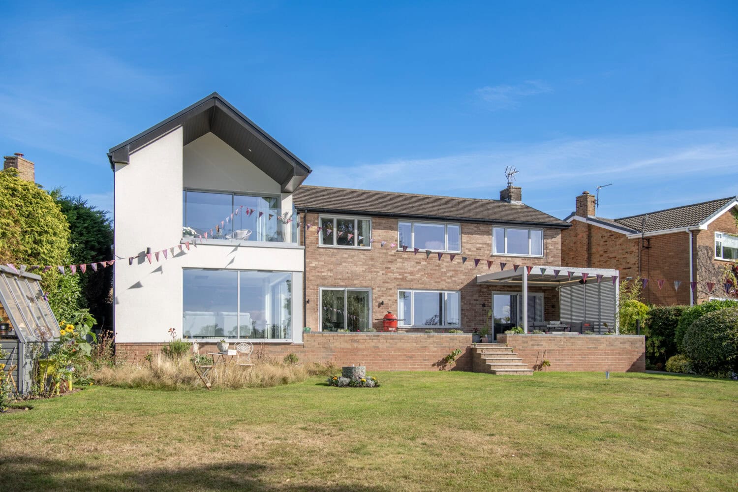 Outdoor living is a key element of the design, and this has been wonderfully achieved on the rear elevation with the ground floor rooms all connected by the raised patio. The master bedroom benefits from a balcony area, a true touch of luxury that can be enjoyed first thing in the morning and the last thing at night. A wonderfully executed project that has significantly increased the homes value while creating a fantastic family home that can be enjoyed for many years to come.