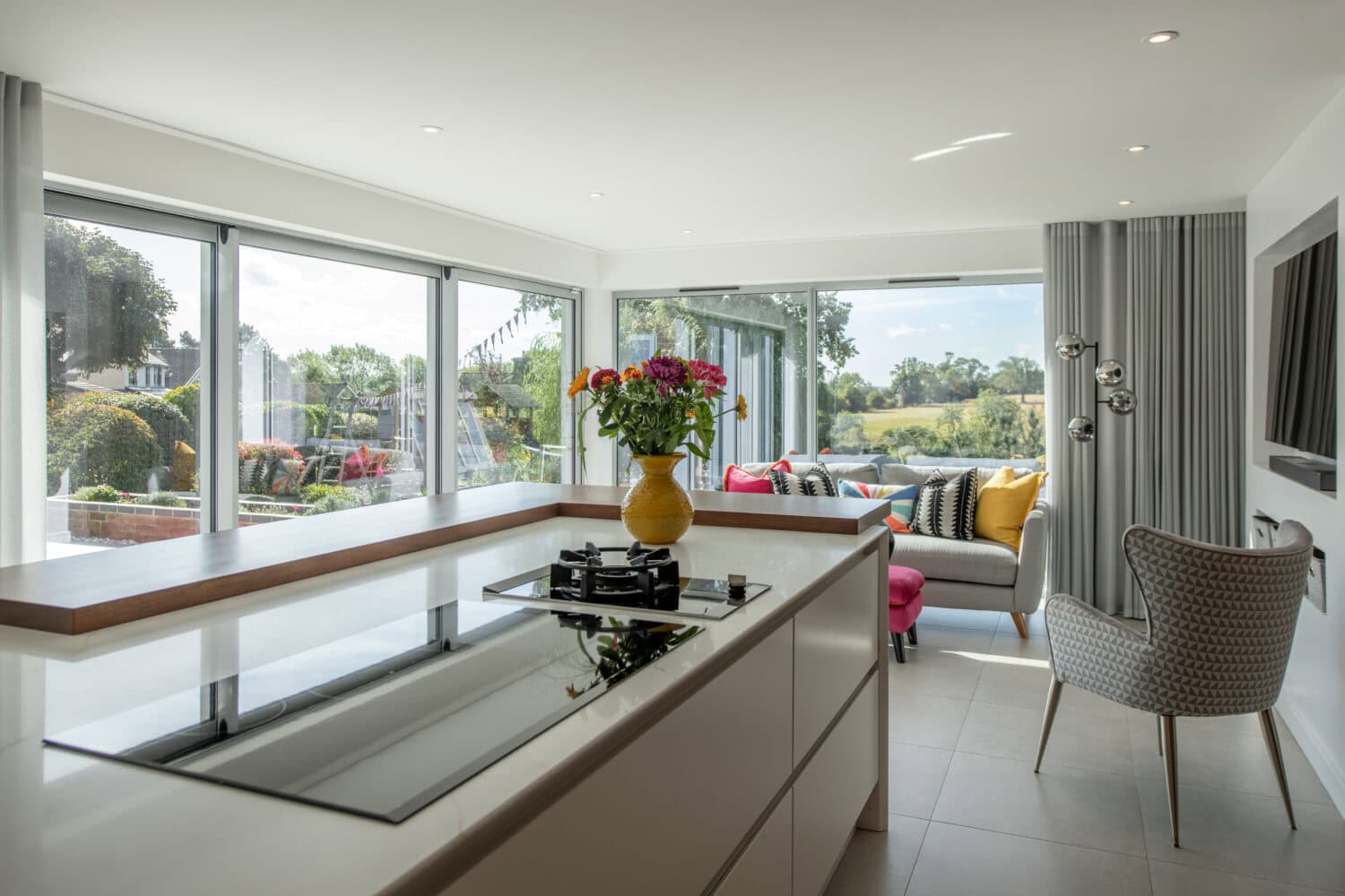 The rear of this property benefits from beautiful and far-reaching views so sliding doors were the obvious choice to make the most of the property’s location. We installed twin track sliding doors in the snug area, living room and the new open plan kitchen and living area with a triple track sliding door in the master bedroom above also.