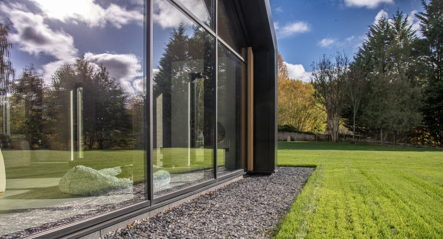 They didn’t need to travel far to find our extensive Glasgow showroom where they could view all the products that would eventually play a pivotal role in the design and function of their new home. Our team liaised with the architect, homeowners and contractors on site and moved quickly to provide all the information and technical specifications required as the SIPS build progressed quickly. We surveyed the specialist items such as the shaped curtain walling and because the house construction was on such a tight deadline, we agreed the sizes for some of the doors and windows to reduce our turnaround times. Agreeing the sizes of the bespoke products is something that can only be done with skilled trades on site and as showcased from the photos of this completed property, every single trade involved in this project completed their work to the highest of industry standards.