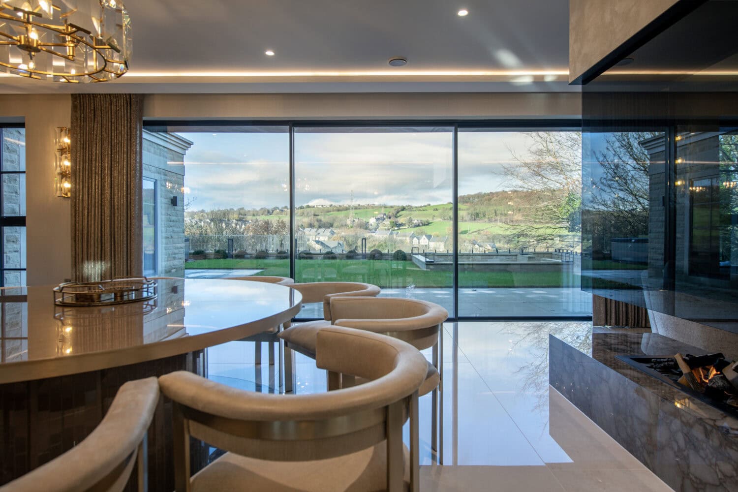 Lift and slide patio doors also support expansive views, particularly across large elevations. While their frames are generally deeper, this depth supports much larger glass panels. Twin track designs with slim vertical sightlines allow lift and slide doors to achieve wide views without visual bulk.