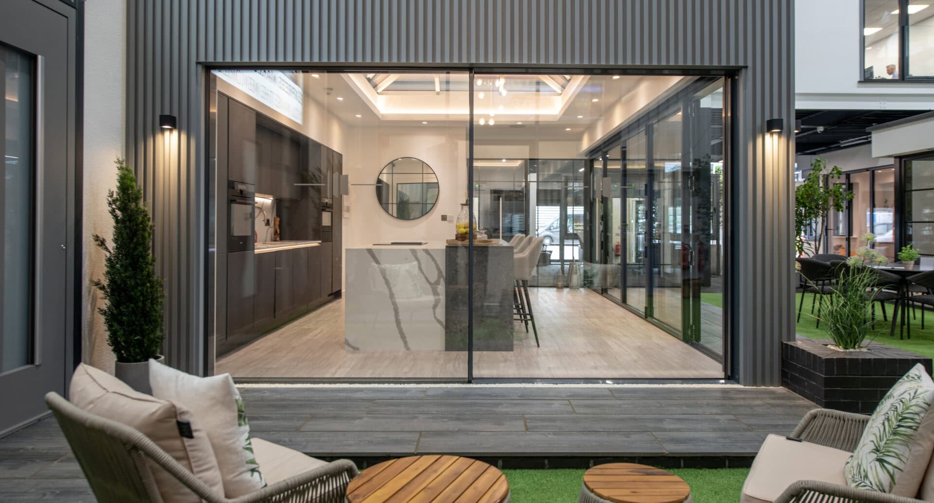 The designs will be based on the fantastic layouts of our Glasgow and Weybridge showrooms, plus the newly completed entrance door areas within our Leeds showroom. We will of course be showcasing our bi-fold and sliding doors, full array of windows and glass roof systems, plus the large roof height within this building lends itself particularly well to double height curtain-walling displays and full house elevations.