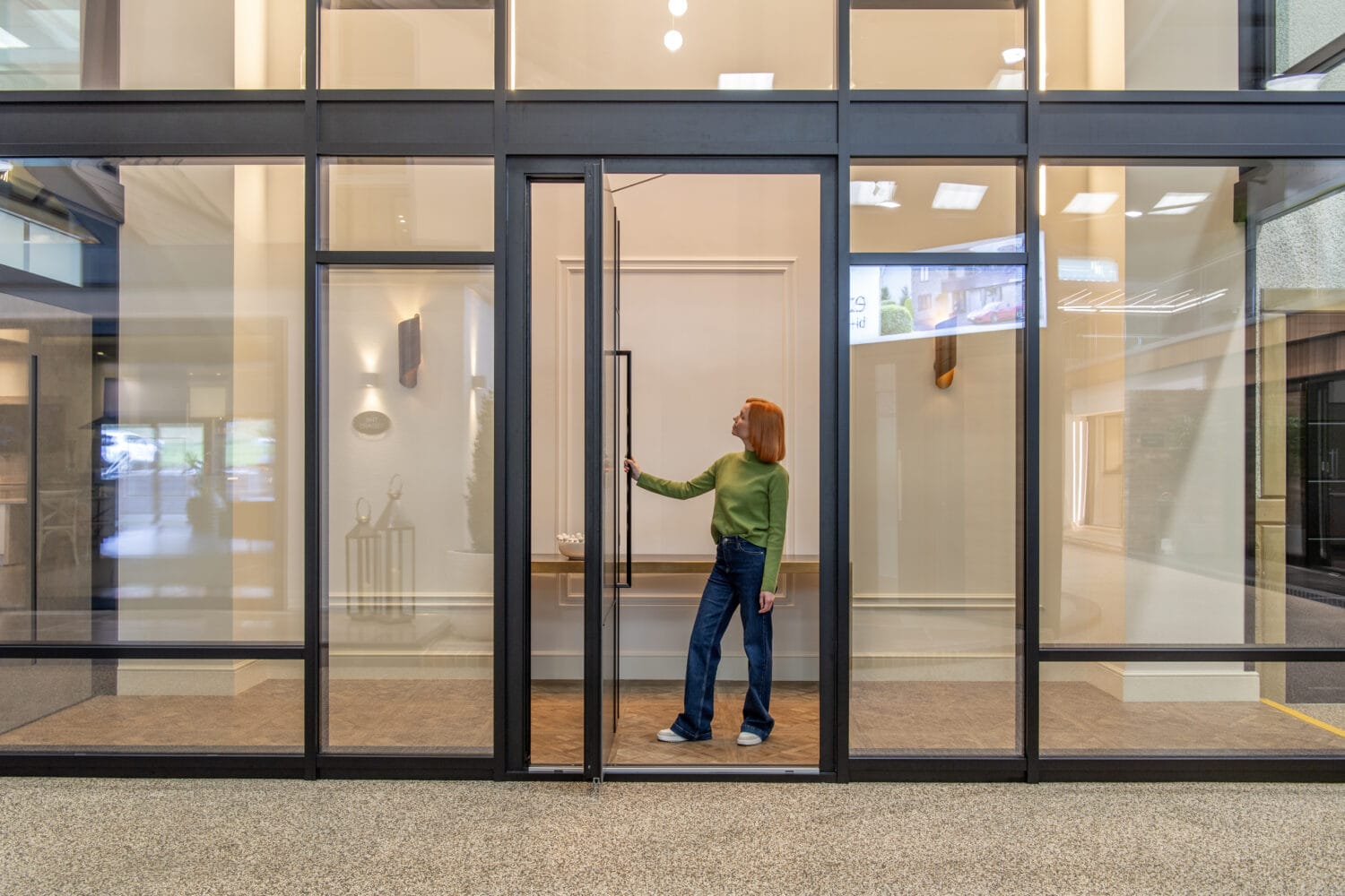 Another consideration with pivot doors is that it has two closing points as opposed to the one potential hazard with hinged doors so you need to bear that in mind if you have small children or pets. We recommend looking at the product in our showrooms and discussing these doors with our Sales team.
