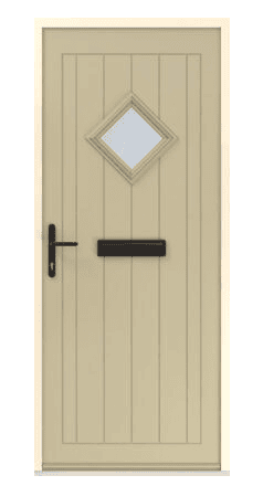 A traditional door available with a triangular glass panel.